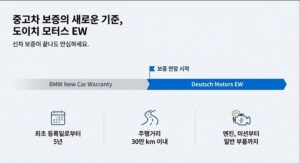 BMW 코리아의 공식 신차 보증 연장에 더해, 도이치모터스는 자체적으로 개발한 연장 보증(EW) 프로그램을 운영합니다.